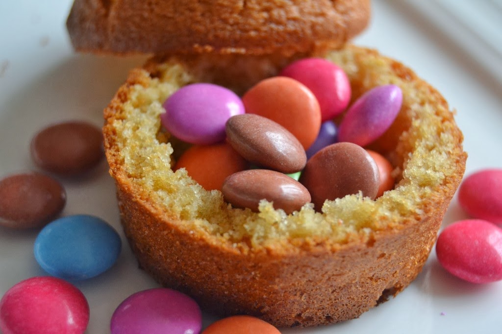 Είναι cup cakes αλλά κρύβουν και μια έκπληξη! Είνai γεμιστά με καραμελάκια m&ms!Ιδανικά για παιδικό πάρτυ-γενέθλια!